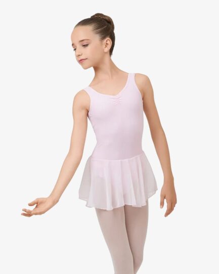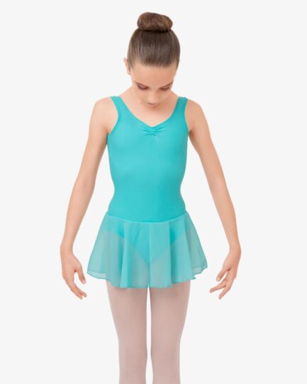 Gathered front and back leotard neckline