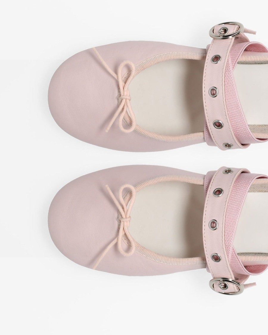 Details: Elasticized ballet flat with strap. Cowhide leather insole. Cotton lining. Rubber sole.
