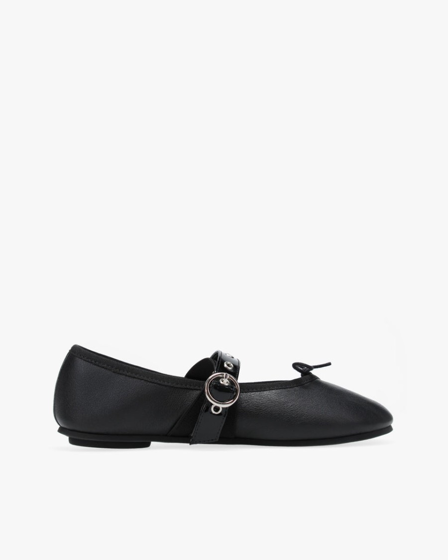 Details: Elasticized ballet flat with strap. Cowhide leather insole. Cotton lining. Rubber sole.