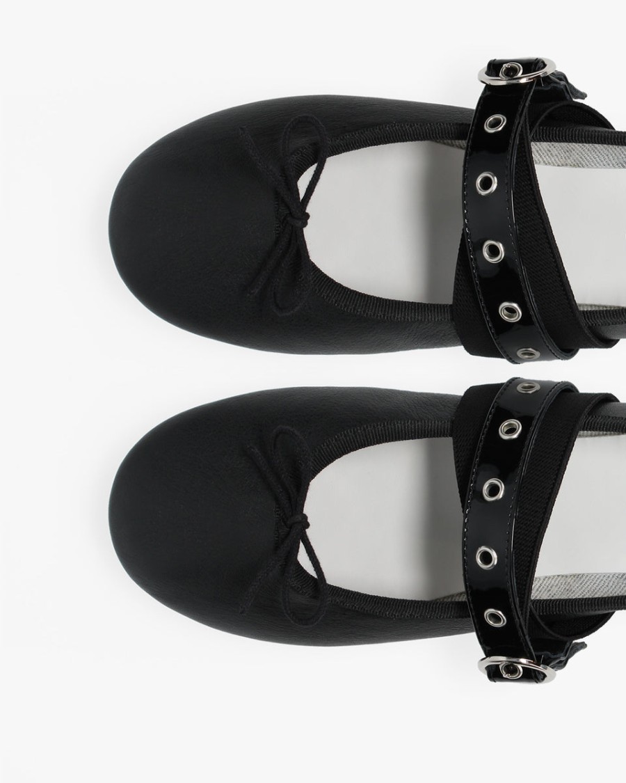 Inspired by the world of ballet, the Ballet Twist Mary Jane embodies the perfect blend of tradition and innovation. Its shape, reminiscent of dance slippers, along with its crossed elastics and leather strap, makes this Mary Jane a style of refined grace, much like a ballerina. Featuring a rubber sole with a small heel, it ensures both comfort and durability.