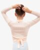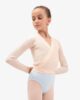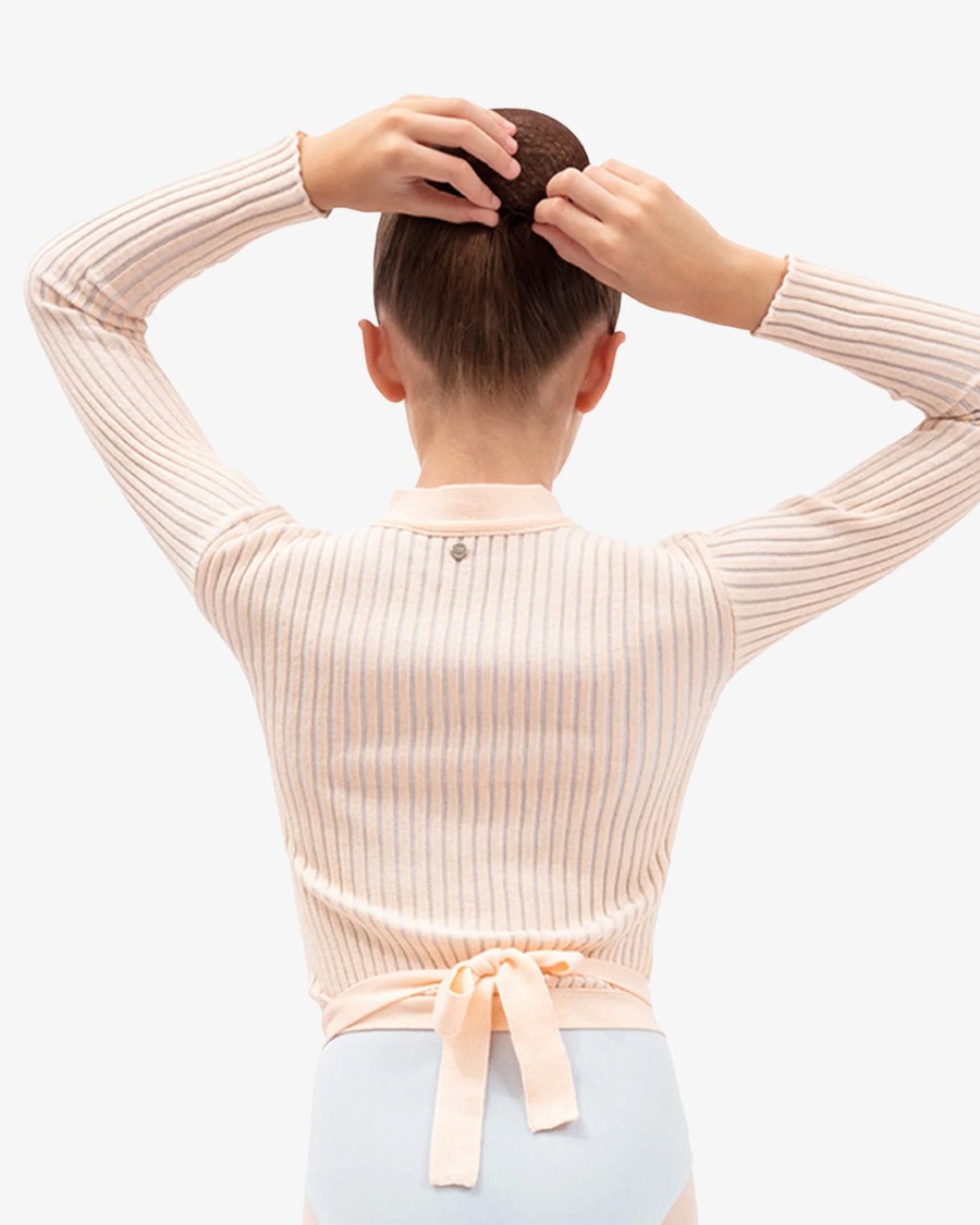 The wrap-over in fancy knit fabric is a traditional model of ballet classes. The V-neckline and the link to knot at the waist emphasize the head bearing and dancers silhouette. Its bicolor rib-knit stretches when you move and let appear a contrasted color, for a graphic and modern silhouette.