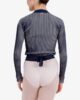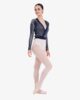 The wrap-over in fancy knit fabric is a traditional model of ballet classes. The V-neckline and the link to knot at the waist emphasize the head bearing and dancers silhouette. Its bicolor rib-knit stretches when you move and let appear a contrasted color, for a graphic and modern silhouette.
