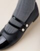 Erin Perle revisits a vintage design by infusing it with a modern touch. Its double strap and patent toe cap lend it a timeless elegance, while the delicate pearls, used as buttons, add a sophisticated and distinctive signature.