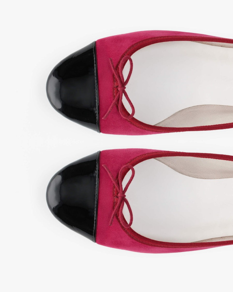 Reemergence of a historic Repetto model. The Flora is one of most iconic lines: a ballet flat with a contrasting patent toe cap, adding a touch of elegance to a wardrobe classic. Made in France, using the stitch-and-return artisanal know-how, this model offers incomparable flexibility.
