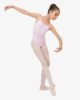 Girl’s leotard with spaghetti straps, with a wide neck trim for a good maintain. The gathered neckline is adjustable with a small inner ribbon in satin. The princess seams emphasize the curves of the dancer. Available in adult size and in many colours, this is an ideal product for major schools and conservatory dancing classes.