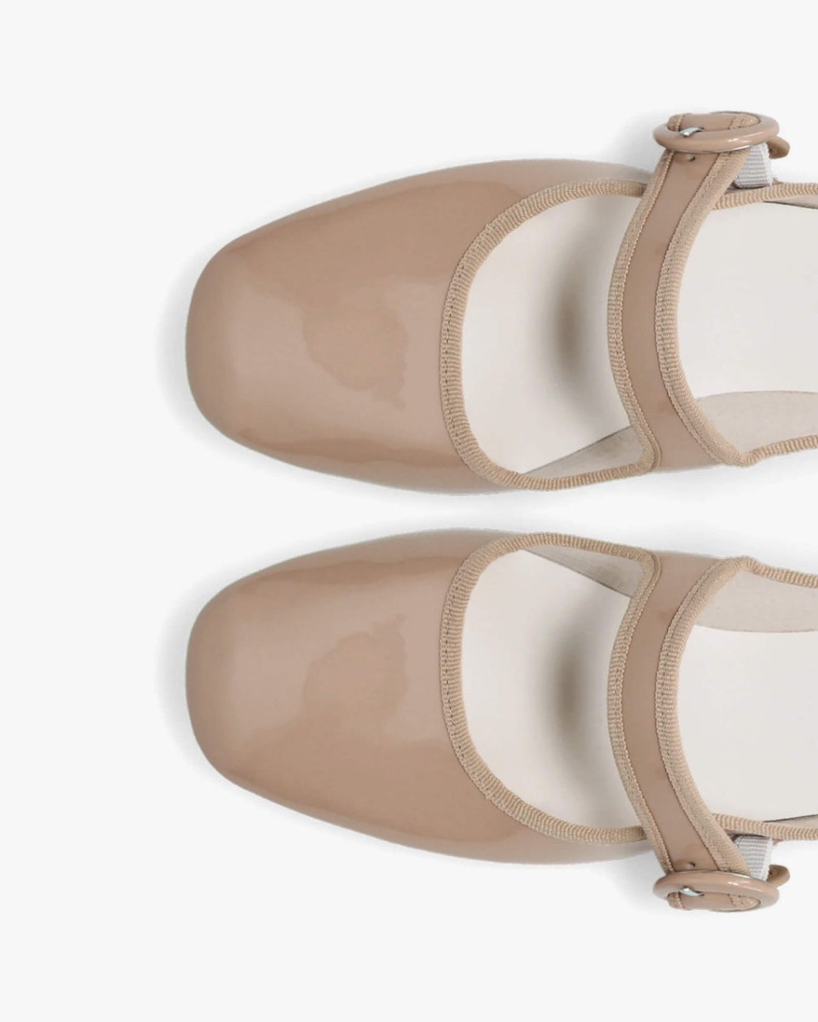 Discover this new season must-have: the Georgia Mary Janes. Subtle squarry lines enhancing the mythical codes : stitch-and-return technique for extreme flexibility, gros grain border, thin strap. A new it-design, yet faithfull to Maison Repetto codes, Georgia opens a new chapter in the Maison history, with both timeless and trendy signature.