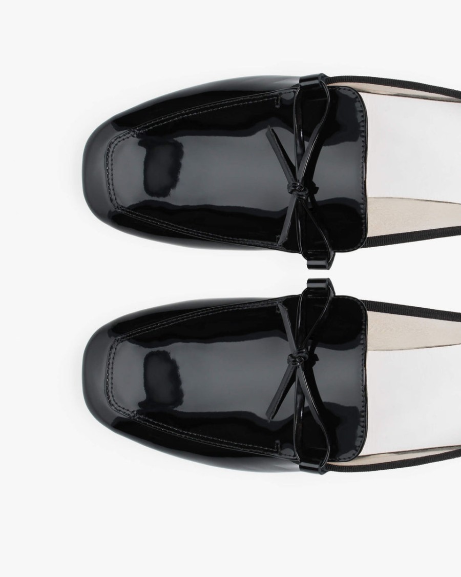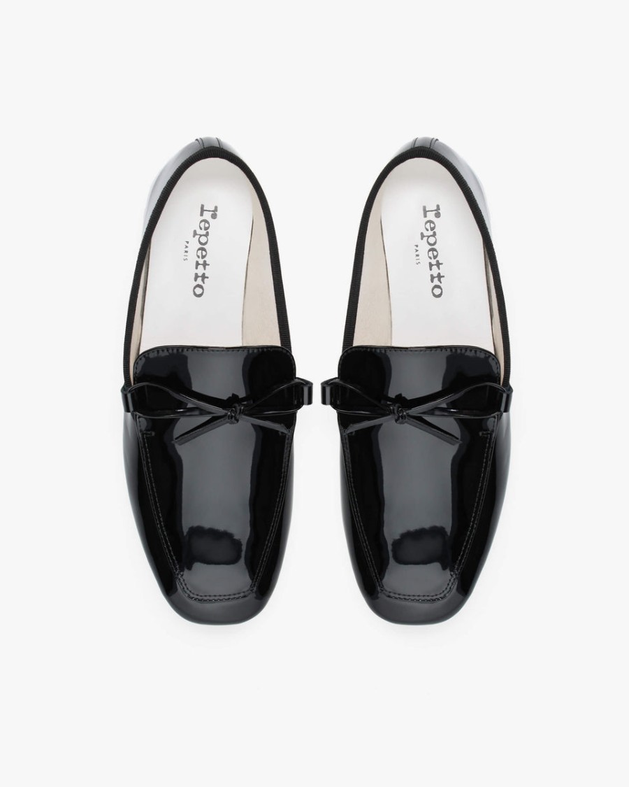 Repetto presents its new loafer: Gilles. Subtle squarry lines, a vamp allowing for a play of materials and colors, the lace revisited in a patent leather version and made using the unique “stitch-and-return” technique in our ateliers in France: this loafer remains true to the House’s codes. Featuring a rubber sole for comfort and resistance, they can be worn on all occasions.
