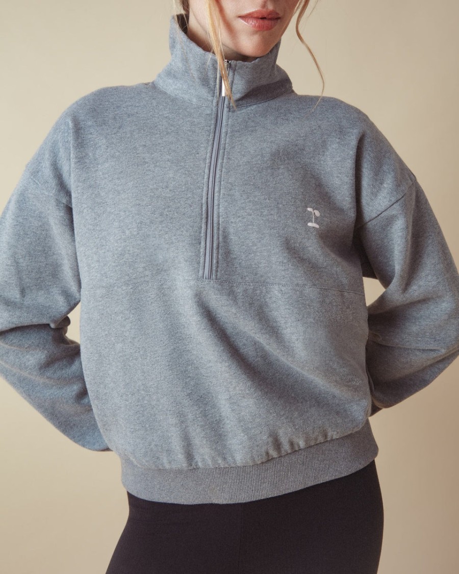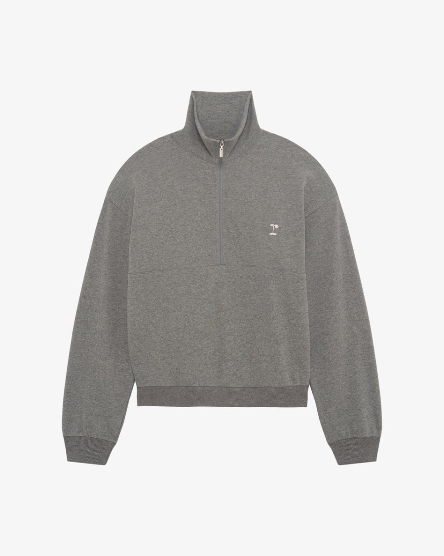 Straight fit with a clean half-zip high collar