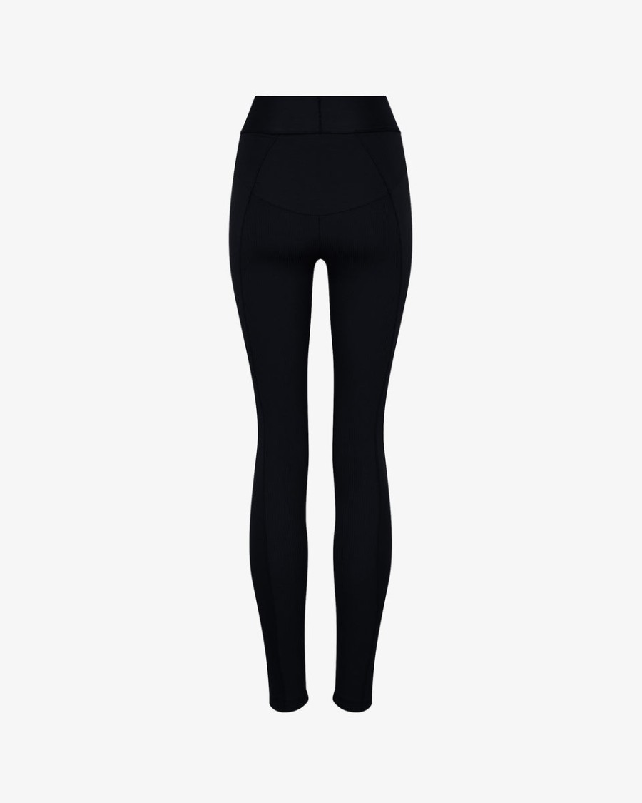 This structured legging reveals femininity in performance. Its cut-outs, a combination of ribbing and flat knit, provide a shaping effect and a slender silhouette. Its wide elastic waistband inspired by the dance ribbon provides specific support in the back. Made of our ultra-stretch B. Recycled ultra-stretch fabric, it shapes and adapts perfectly to all intensity practices.