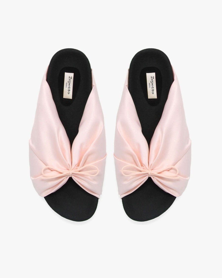An irresistibly comfortable platform sole, an oversized satin bow, subtly finished with Repetto’s signature lace: a model that softly signals a chic, natural and casual style.
