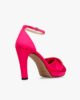 A high, slender heel combined with a front platform: the new Joy formal is the assurance of unrivalled comfort and stability. Made entirely in satin, this model features a voluptuous twisting movement on the front of the foot, for a couture look. The delicate ankle strap, which provides ideal support, is adorned with a rhinestone buckle, subtly finalizing a sensual and sophisticated look.