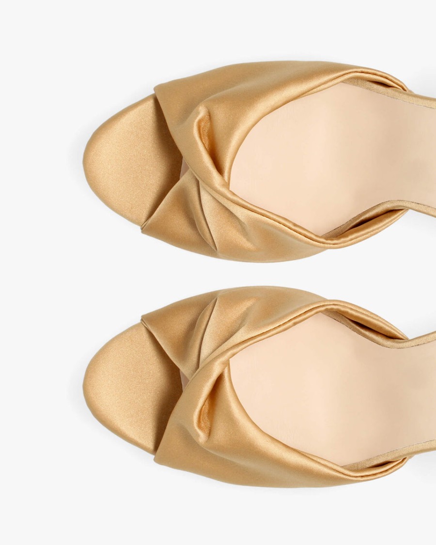 A high, slender heel combined with a front platform: the new Joy formal is the assurance of unrivalled comfort and stability. Made entirely in satin, this model features a voluptuous twisting movement on the front of the foot, for a couture look. The delicate ankle strap, which provides ideal support, is adorned with a rhinestone buckle, subtly finalizing a sensual and sophisticated look.