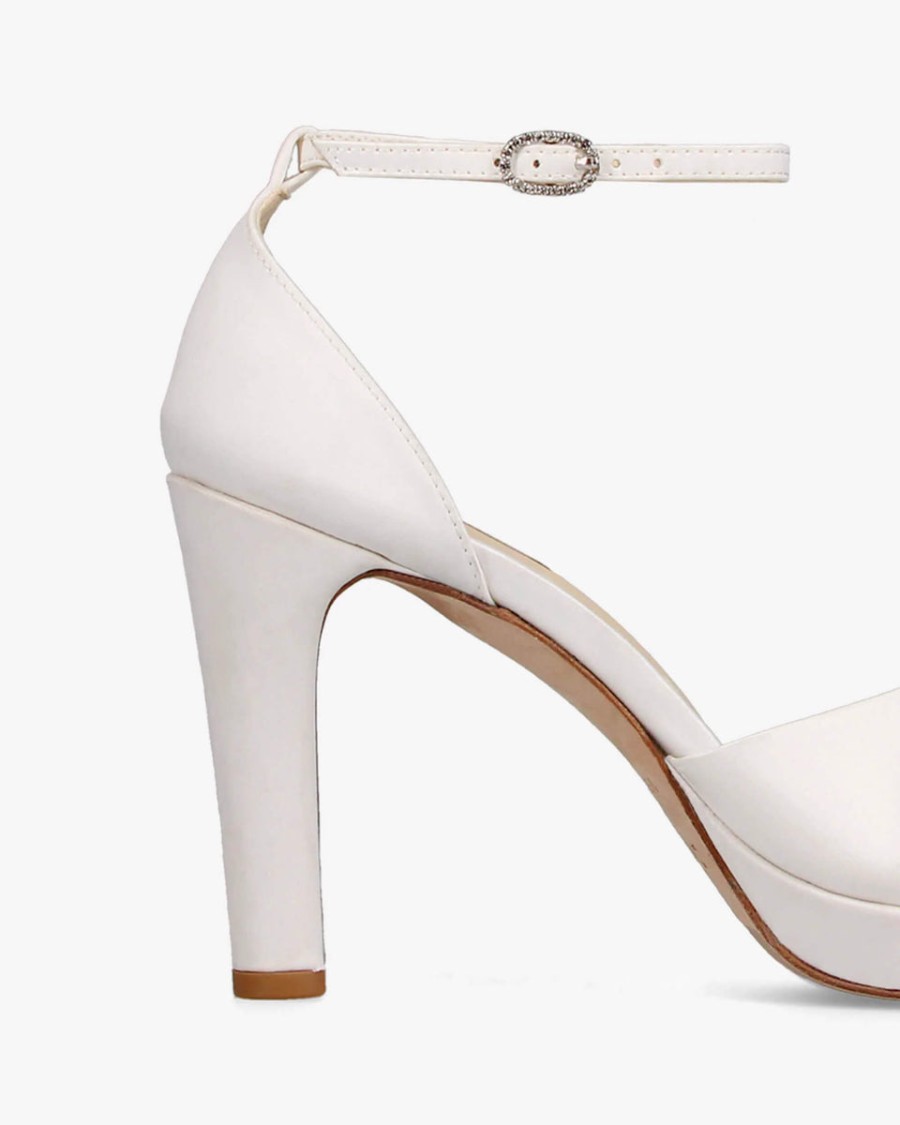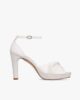A high, slender heel combined with a front platform: the new Joy formal is the assurance of unrivalled comfort and stability. Made entirely in satin, this model features a voluptuous twisting movement on the front of the foot, for a couture look. The delicate ankle strap, which provides ideal support, is adorned with a rhinestone buckle, subtly finalizing a sensual and sophisticated look.