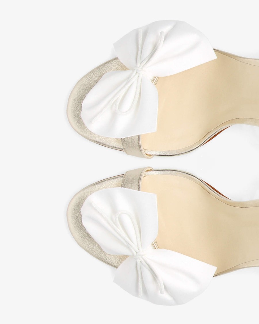 The Justine sandal, designed on a slim 9 cm heel, creates an elegant and refined silhouette. Its slender straps delicately reveal the foot and cross over at the back for flawless support. Adorned with a satin bow coupled with the Maison’s iconic lace, it offers an attitude of grace and sophistication.