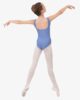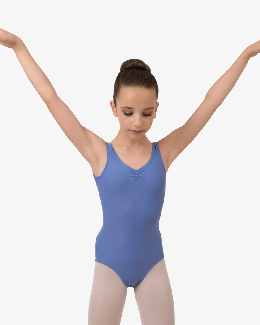 This leotard is specifically developed for the first years of dance practice. The body is perfectly maintained thanks to the large straps. The gathered neckline is adjustable with a small internal satin ribbon, which brings a fancy touch to the leotard. This style is lined in the front.