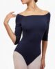 This ladies leotard with 3/4 sleeves has an original cut with a square neckline. It can be worn on the shoulders, in order to underlines the upper body and the head bearing. The leotard follows the lines of the body and ensures precise and graceful movements.