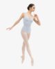 Round gathered neckline to highlight the top of the body. The fantasy detail in the back enhances its classic style. The cross-over chiffon frill gives a glimpse of the movements.