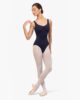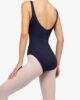 Leotard with thin straps. Round gathered neckline to highlight the top of the body. The fantasy detail in the back enhances its classic style. The cross-over chiffon frill gives a glimpse of the movements.