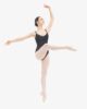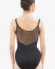 This girl’s double-strap leotard features a V-neck in the front and a low scoop back. The topstitching on the front enhances the dancer’s silhouette. Lace around the chest and on the back imbues the garment with a touch of fantasy while highlighting its inherent elegance.