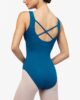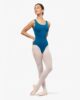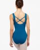 This ladies leotard with large straps has a round front neckline that provides a perfect maintain of the upper body while allowing a great freedom of movements. The fancy shape in the back and the chest seam underline the classical aspect of the style. This model has an integrated breast support. Available in child size and in many colours this is a perfect product for the different levels of dance schools.