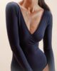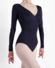 The long-sleeved women’s leotard has a wrap-over effect on the front. It has an original cut with a V neckline at the front and a large round neckline at the back. The leotard follows the lines of the body and ensures precise and graceful movements.