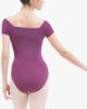 This ladies leotard with short raglan sleeves has an original cut with a square neckline. It can be worn on the shoulders, in order to underlines the upper body and the head bearing. The leotard follows the lines of the body and ensures precise and graceful movements. Transparent transfer of the Repetto logo on the back. Mat aspect.
