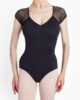 Details: Bi-fabric leotard. Short sleeves in lace fabric. V front neckline. Large open back.