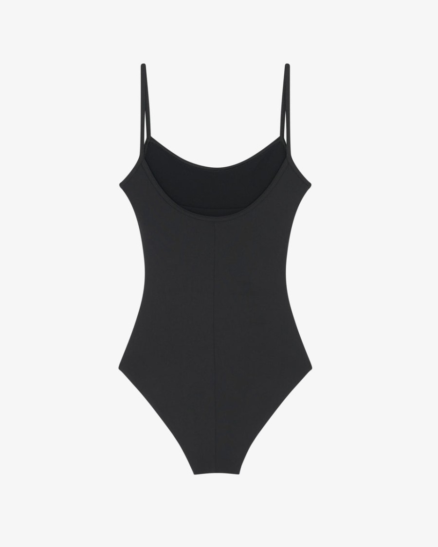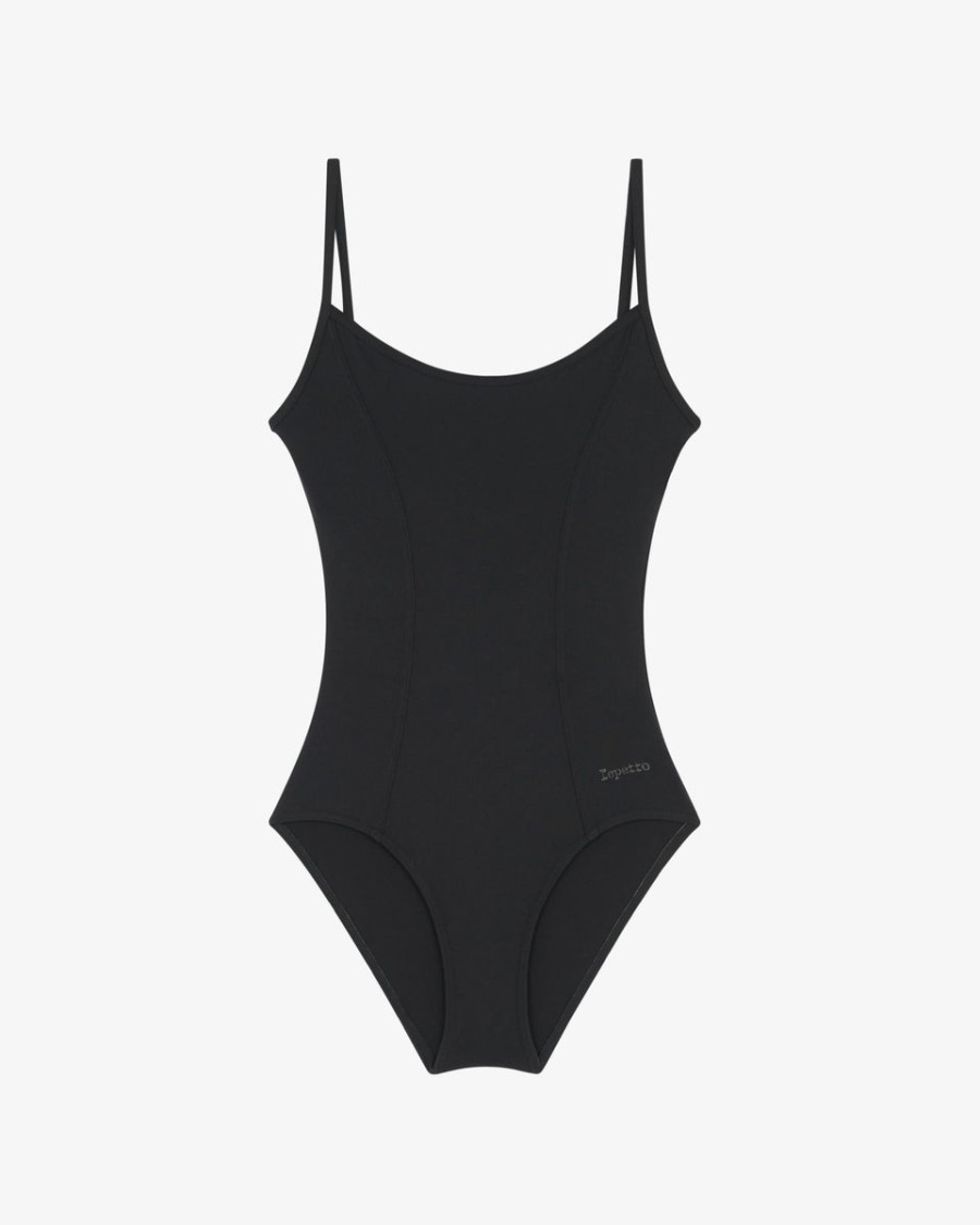 Ladies leotard which provides comfort and allows easy movements. Thanks to the spaghetti straps and the front and back round neckline, the shoulder blades and the head bearing are cleared. The princess seams enhance the curves of the dancer, and ensures precise and graceful movements. This style also includes an integrated breast support. Transparent transfer of the Repetto logo on the back. Mat aspect.
