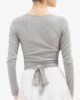 Mouse grey long-sleeved wrap-over top, large straps for different ways of wearing. R Jacquard logo in matching tones on the top of the sleeve. Clothes of the dance collection are created thanks to our know-how that is developed since 1947. They are created from our dance expertise.