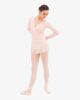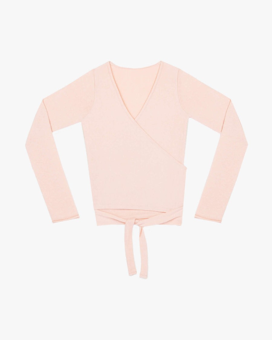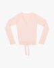 Petal pink long-sleeved wrap-over top, large straps for different ways of wearing. R Jacquard logo in matching tones on the top of the sleeve. Clothes of the dance collection are created thanks to our know-how that is developed since 1947. They are created from our dance expertise.
