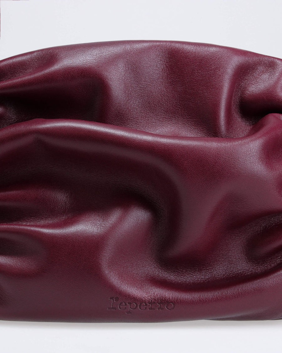 The new Opéra bag, a tribute to the heritage of the Repetto House. The fluidity of the lines, the softness of the leather, and the pleated details express the grace and femininity that are emblematic of the ballet world. Its round and generous shape draws inspiration from the iconic design of dance bags. Made in Italy with high-quality leather lined with satin, this new model can be carried by hand or over the shoulder. The Opéra bag is signed with a removable grosgrain bow that delicately highlights its unique style.