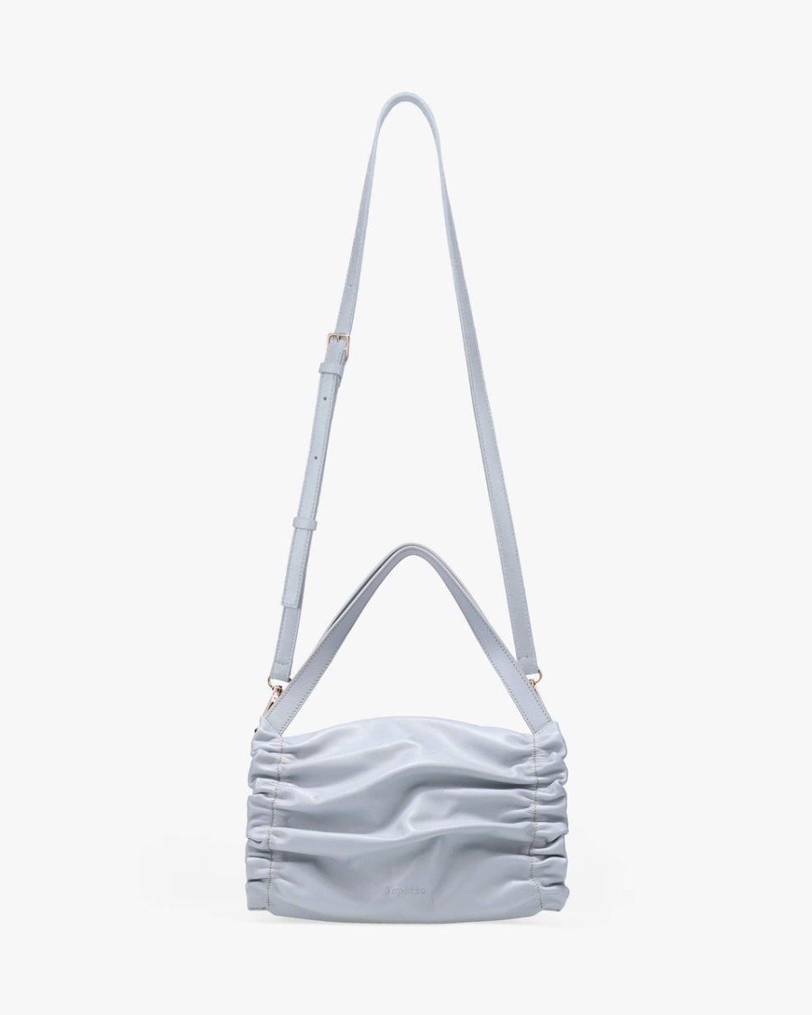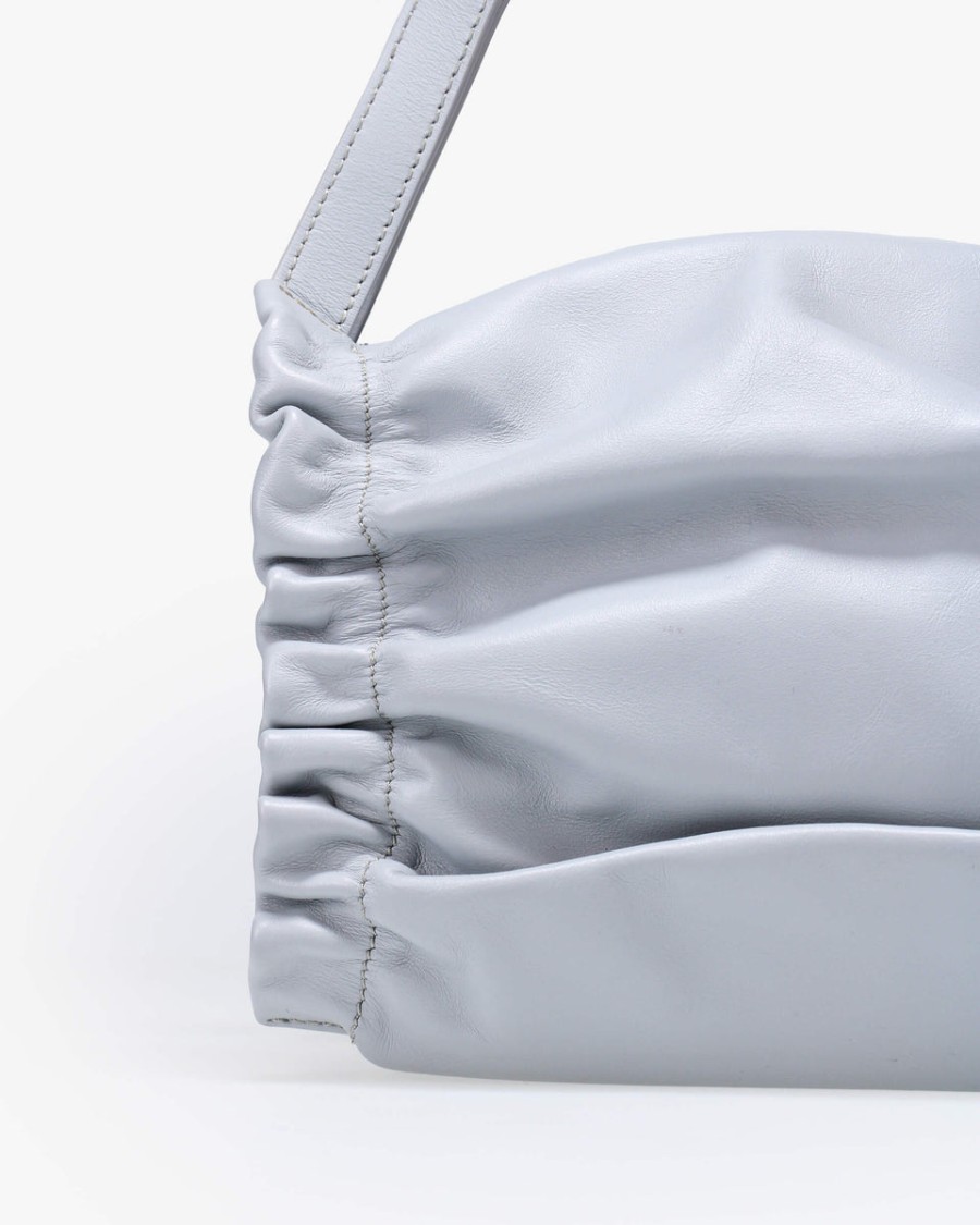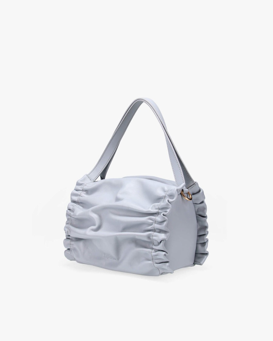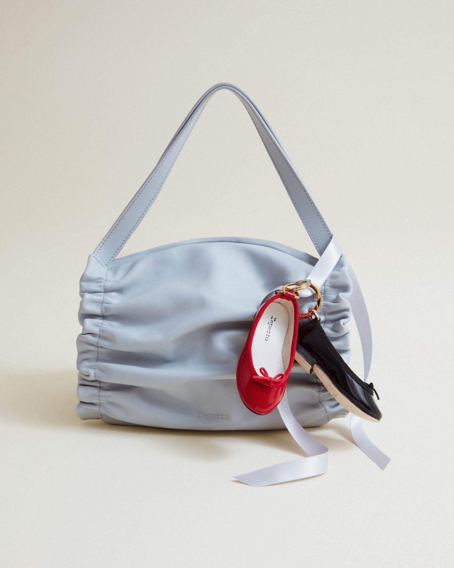The new Opéra bag, a tribute to the heritage of the Repetto House. The fluidity of the lines, the softness of the leather, and the pleated details express the grace and femininity that are emblematic of the ballet world. Its round and generous shape draws inspiration from the iconic design of dance bags. Made in Italy with high-quality leather lined with satin, this new model can be carried by hand or over the shoulder. The Opéra bag is signed with a removable grosgrain bow that delicately highlights its unique style.