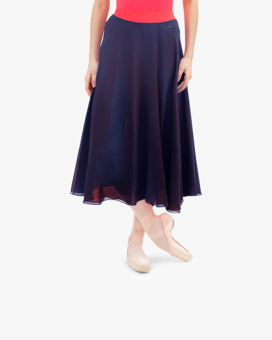 This reversible rehearsal chiffon skirt is perfect for the studio and stage work. Its tightening lace ties up in the waist allows to adjust it depending on the need.