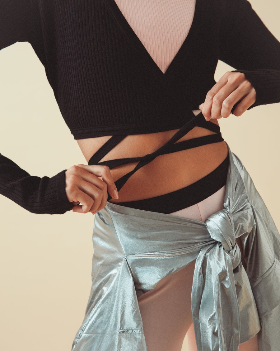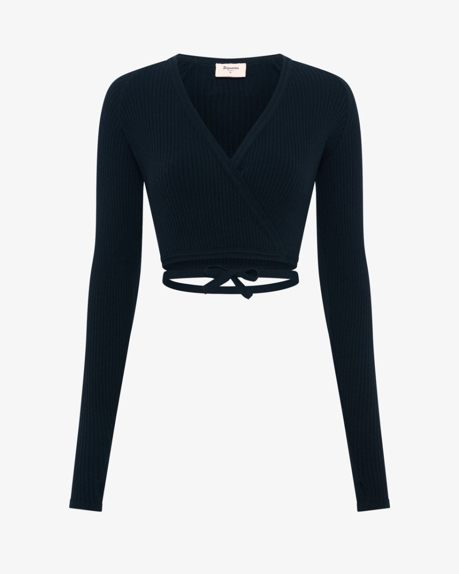 This wrap-over is an iconic style of the ballet dancer wardrobe, twisted in a modern and feminine look with its cropped cut.