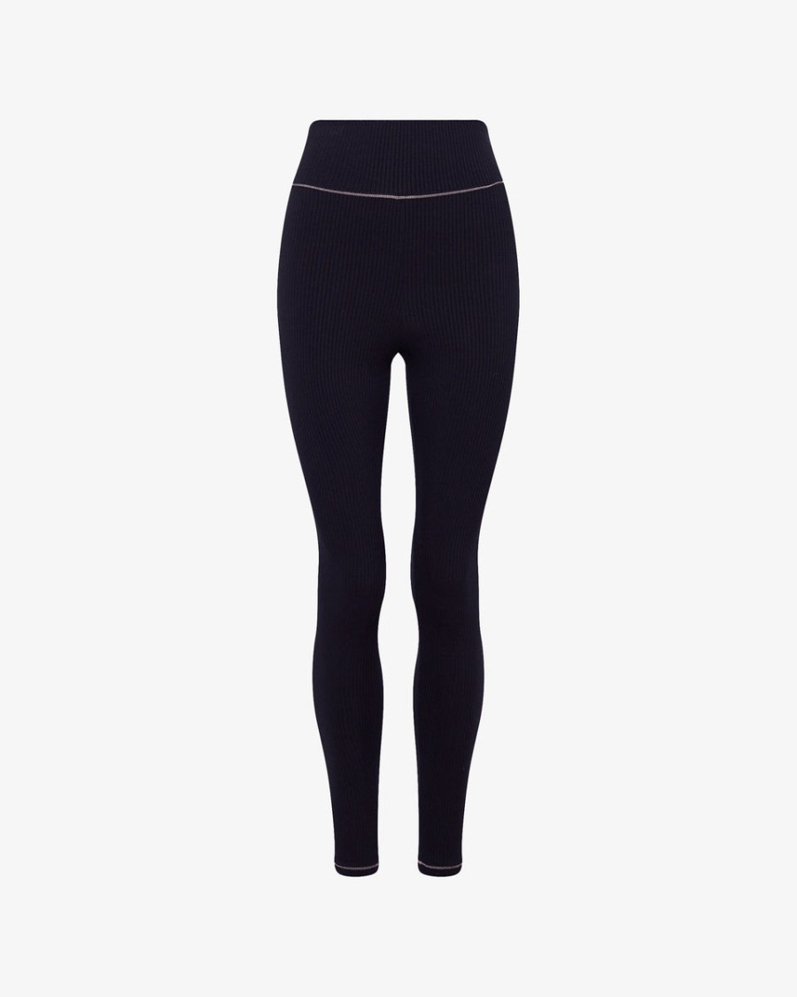 Designed in a soft, stretchy ribbed fabric, this legging is inspired by the warm-up tights used in dance practice. Its exceptional comfort makes it a must-have for yoga, Pilates, or dance, or for optimal ease throughout the day.