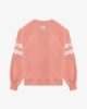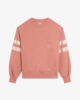 Details: Long sleeve fleece sweatshirt with brushed interior. Straight shape with low armholes. Round neckline. Low armholes. Satin stripes on sleeves. Ribbed bottom sleeves and bottom of sweatshirt.
