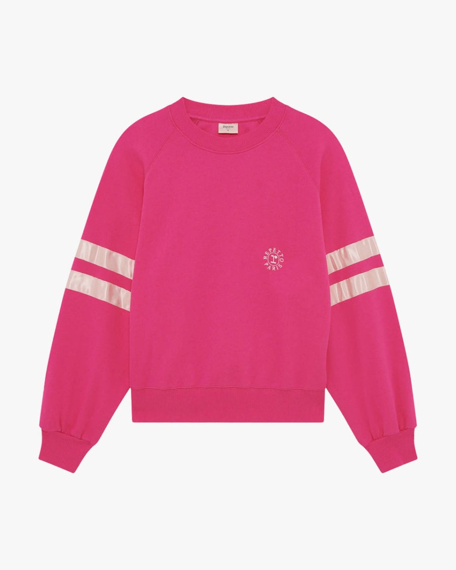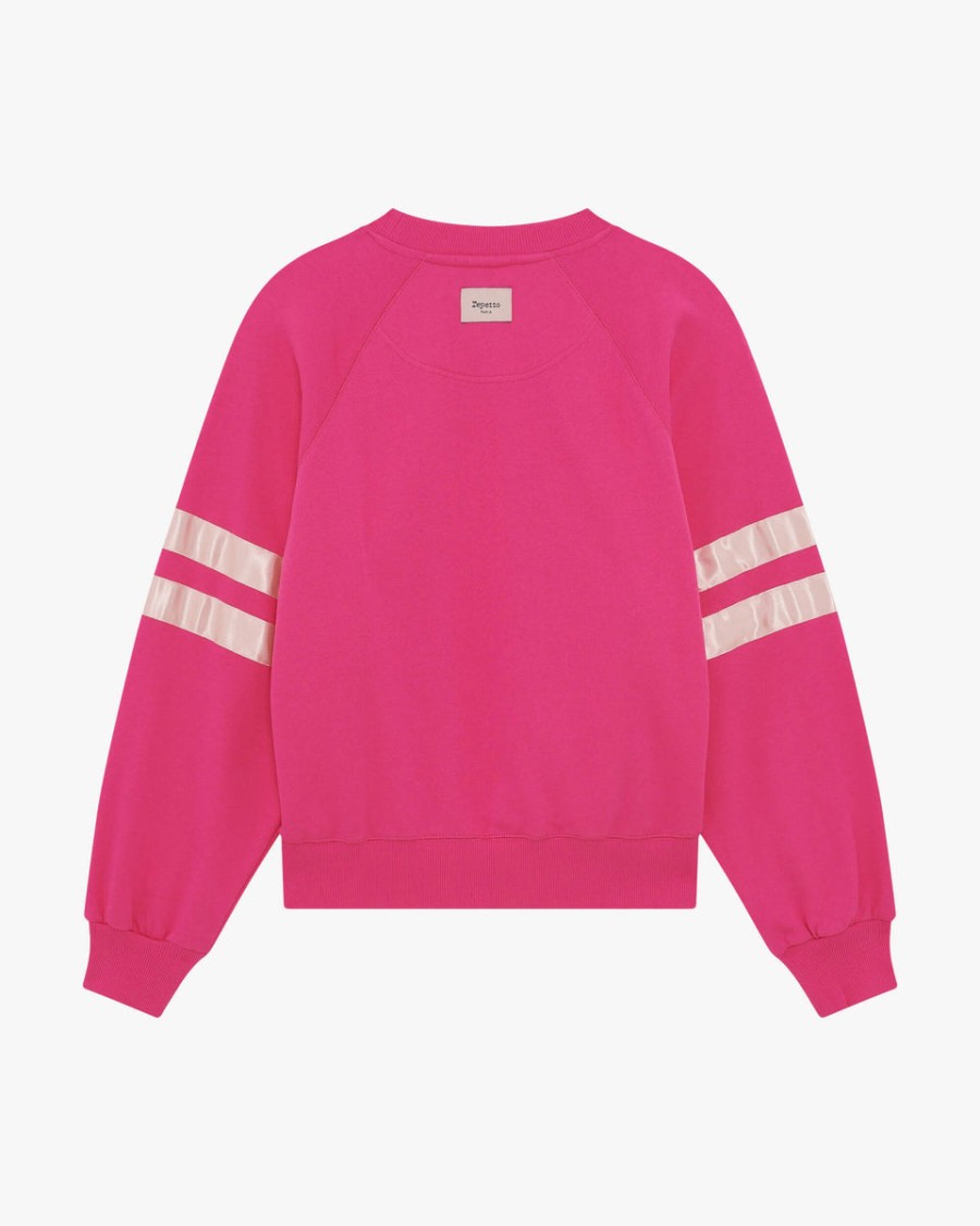 This sweatshirt is an iconic part of the Repetto athleisure wardrobe. Its satin stripes and its loose shape at the armholes make it a more fashionable piece. Its material, a fleece scraped inside offers softness, comfort and warmth while light.