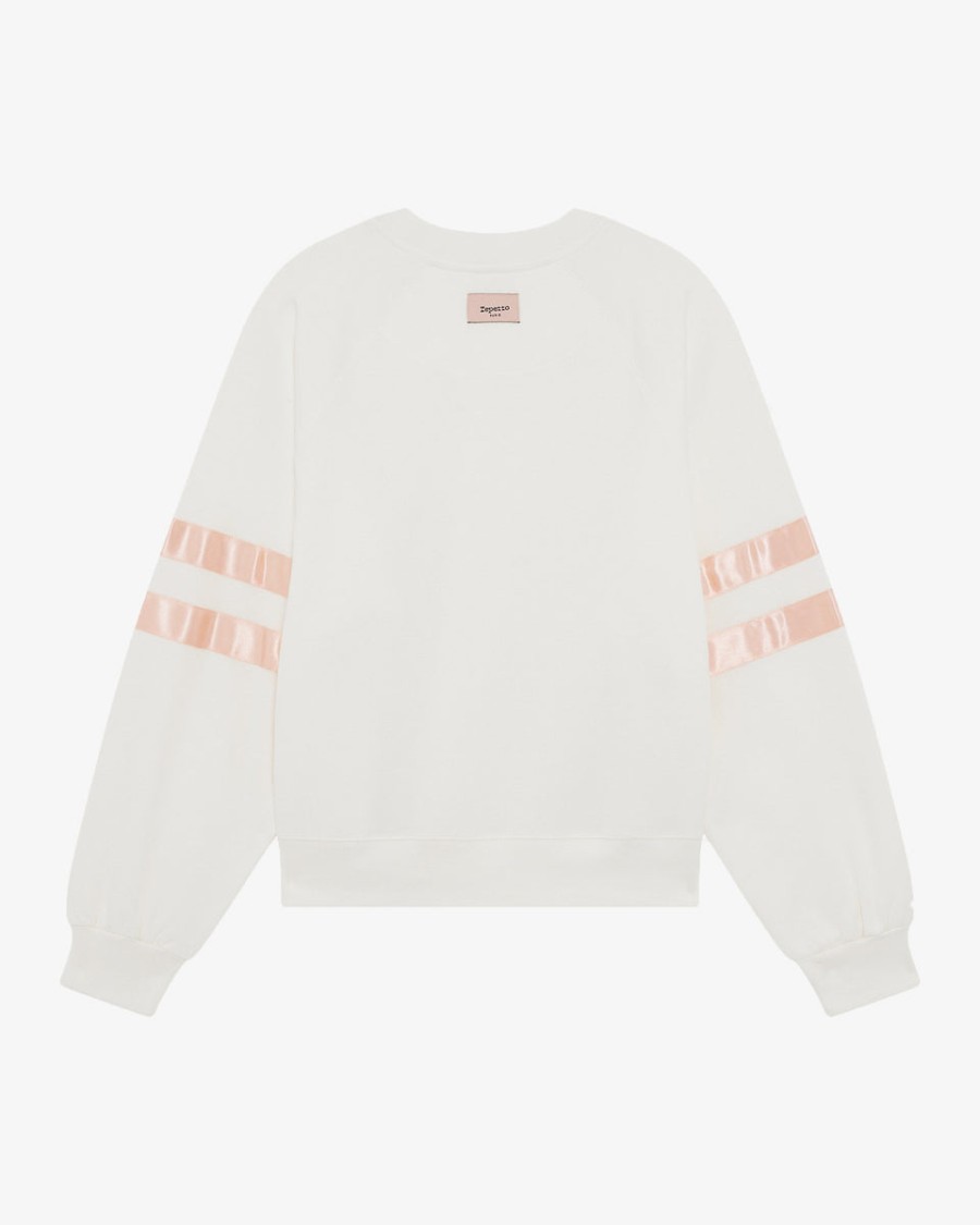 With its satin ribbons around the arms, this crew-neck sweatshirt is an iconic of the Repetto sportswear wardrobe