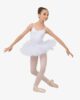 The short girl’s tutu is emblematic of the first young dancer’s tutu. The spaghetti straps and the corset style with princess seams emphasize the dancer’s silhouette. The four layers of straight and short tulle give a ball shape to the tutu. Front lining. Transparent transfer of the Repetto logo on the back.