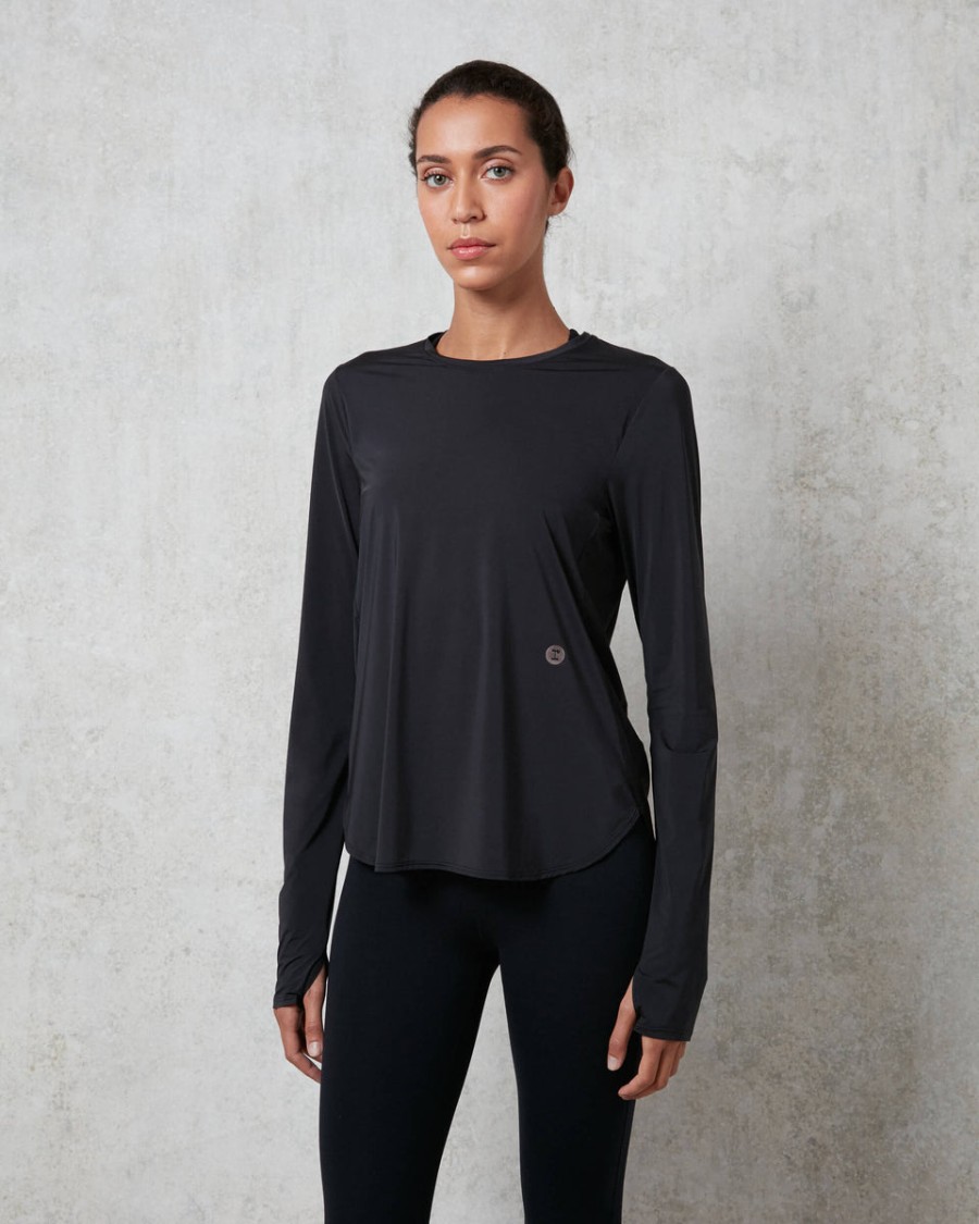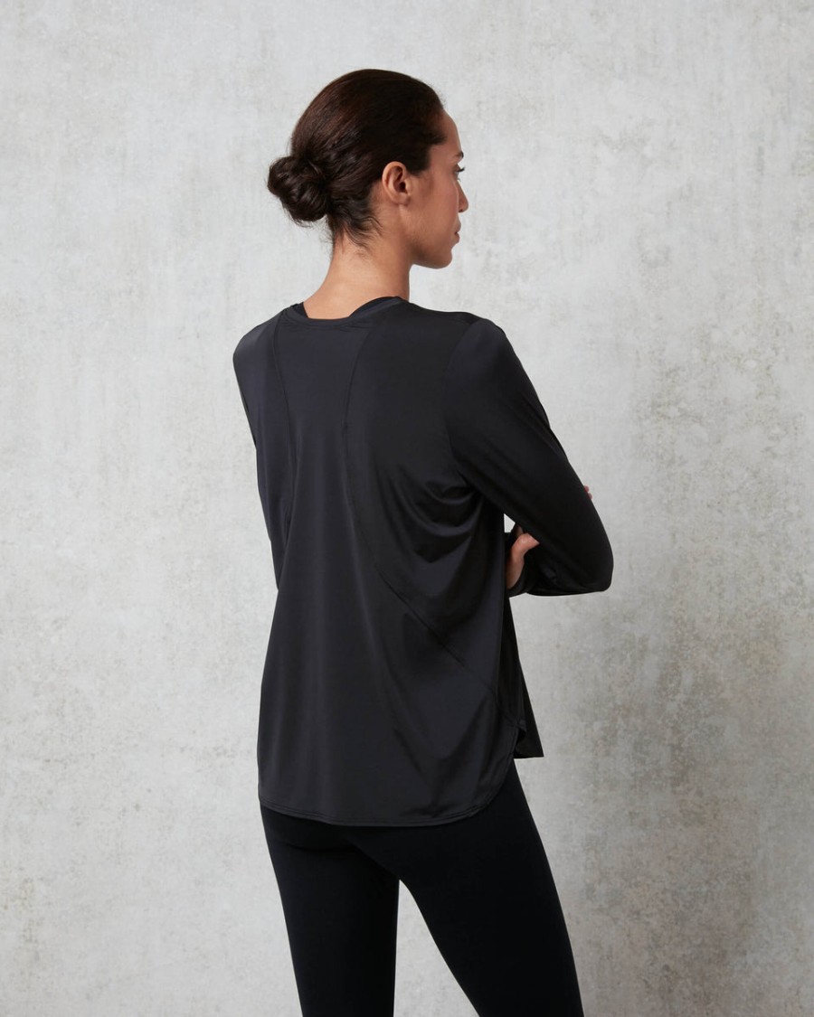 Designed in an ultra-soft and silky-like fabric, this long sleeve top can be worn over a bra for practice. It can also be matched with a classic pant for effortless, everyday wear.