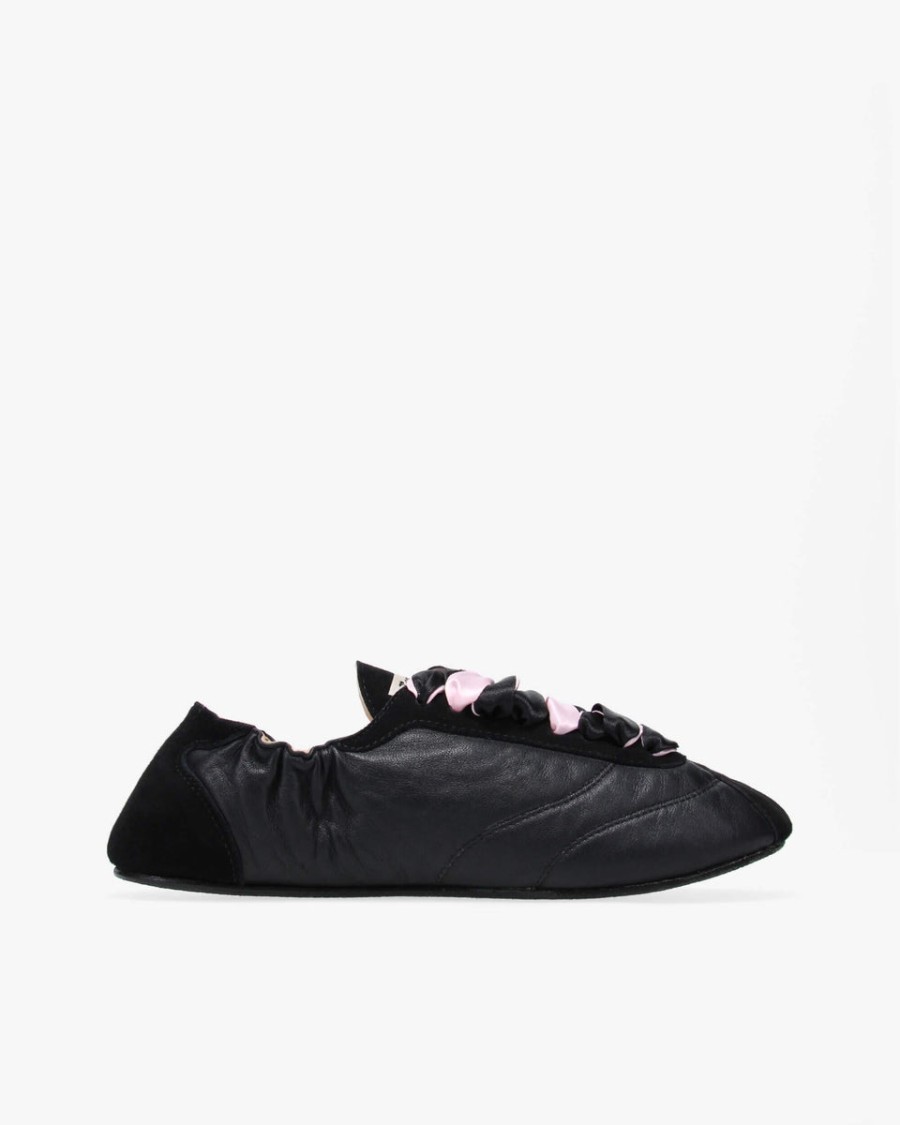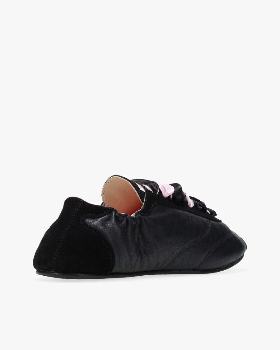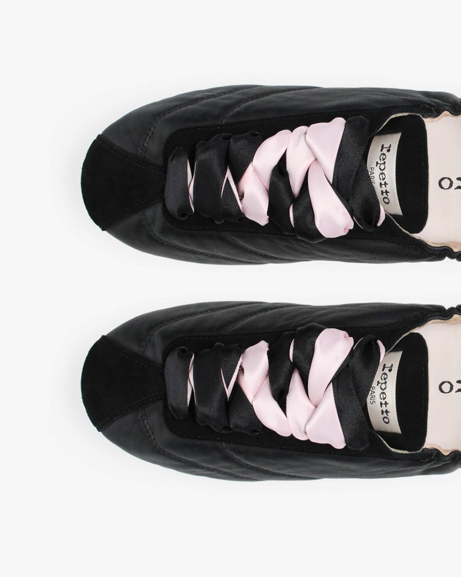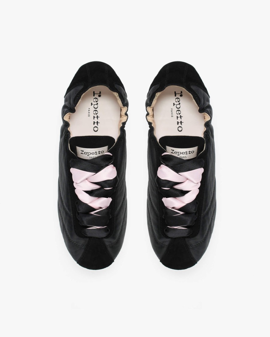 At the crossroad of a city sneaker and a ballet shoe, the Silk Tennis is inspired by ballet flat details. Its double satin laces, thin sole and pleated collar, recall the world of dance at the heart of the House’s heritage, offering femininity and incomparable comfort.