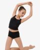 Black sleeveless top for young dancer. Large straps and round neckline. Transfer of the Repetto logo. Mat aspect.