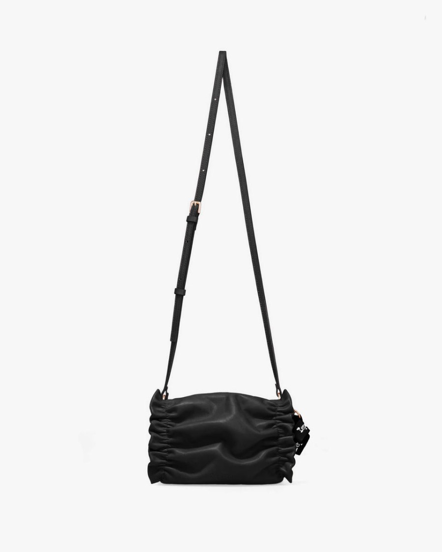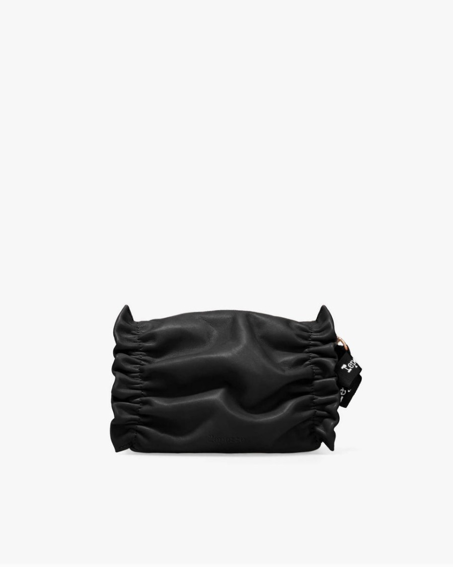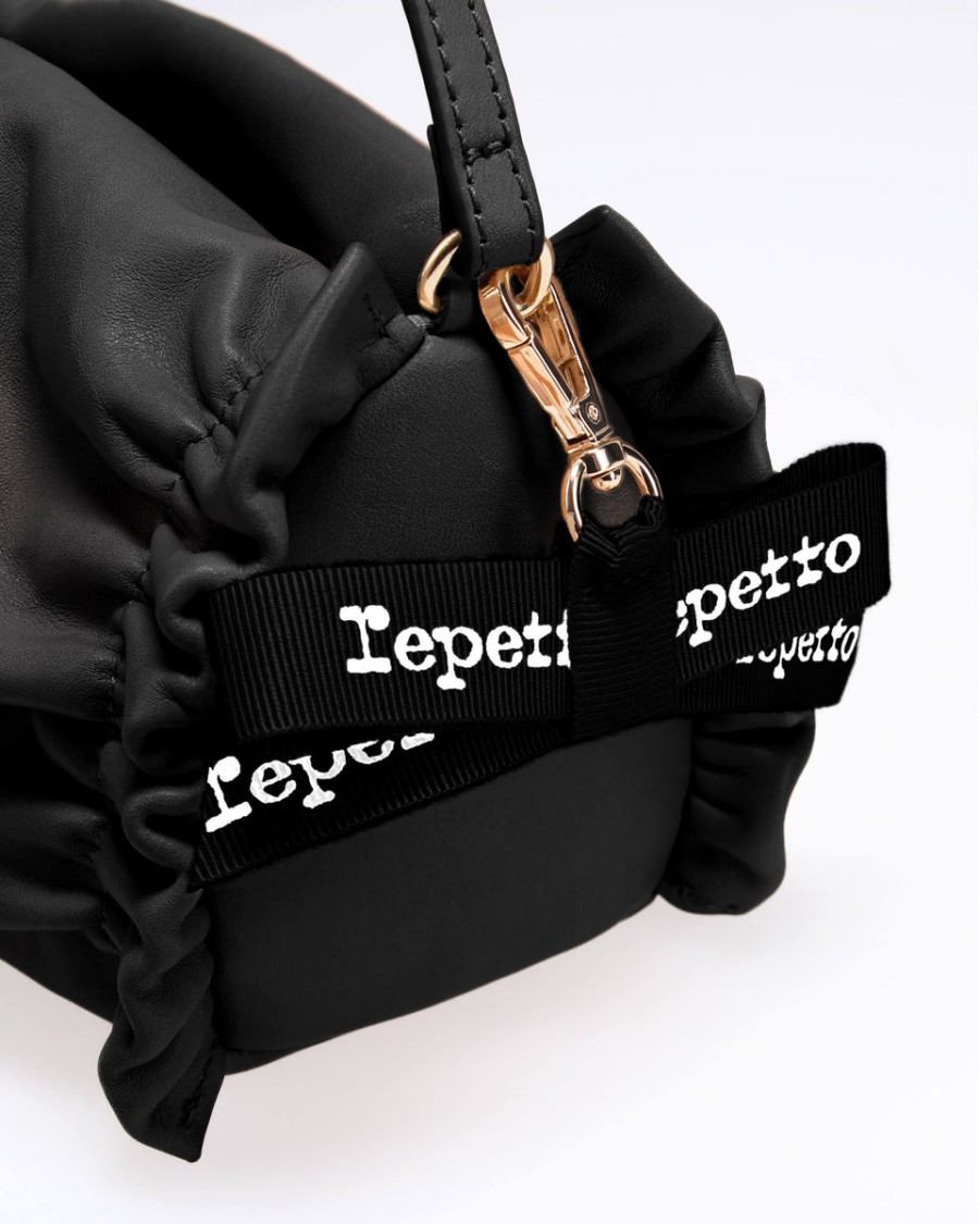 The new Petit Opéra bag, a tribute to the heritage of the Repetto House. The fluidity of the lines, the softness of the leather, and the pleated details express the grace and femininity that are emblematic of the ballet world. Its round and generous shape, in a mini format, draws inspiration from the iconic design of dance bags. Made in Italy with high-quality leather lined with satin, this new model is worn crossbody. The Petit Opéra bag is signed with a removable grosgrain bow that delicately highlights its unique style.