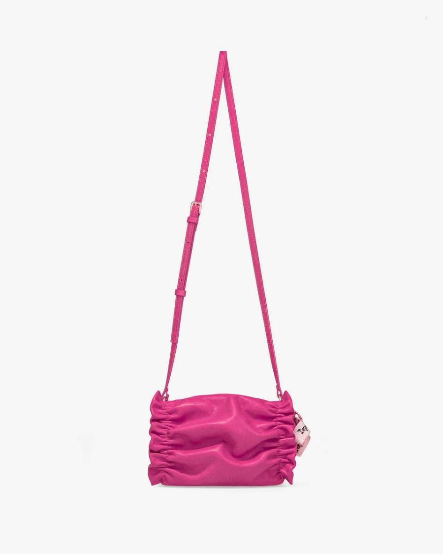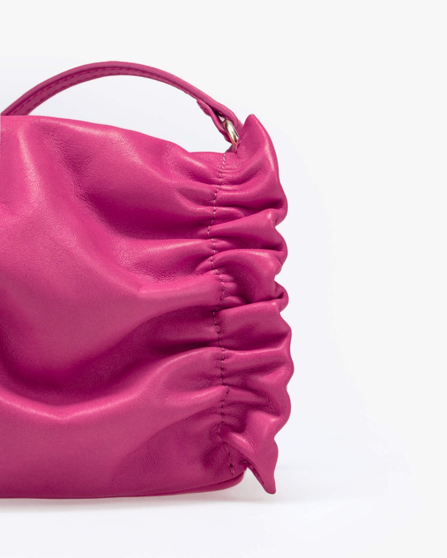 The new Petit Opéra bag, a tribute to the heritage of the Repetto House. The fluidity of the lines, the softness of the leather, and the pleated details express the grace and femininity that are emblematic of the ballet world. Its round and generous shape, in a mini format, draws inspiration from the iconic design of dance bags. Made in Italy, with high-quality leather lined with satin, this new model is worn crossbody. The Petit Opéra bag is signed with a removable grosgrain bow that delicately highlights its unique style.