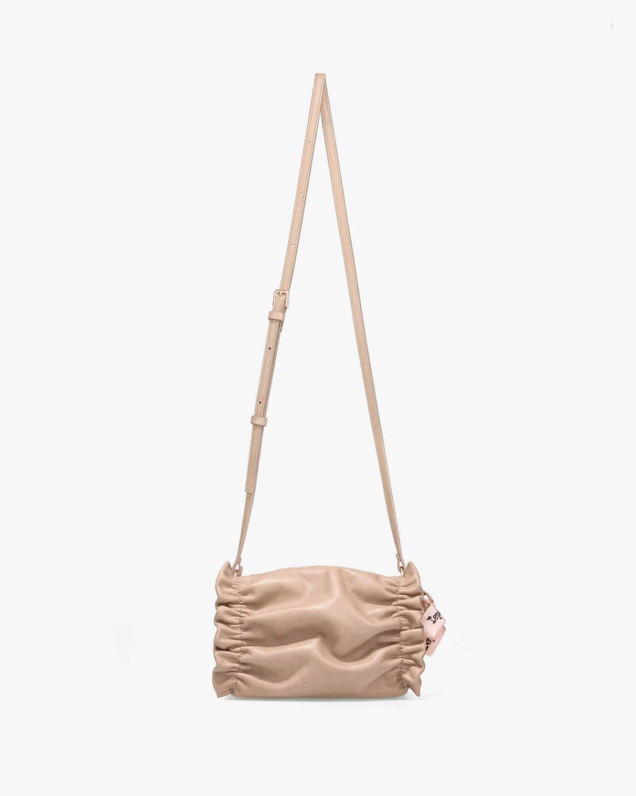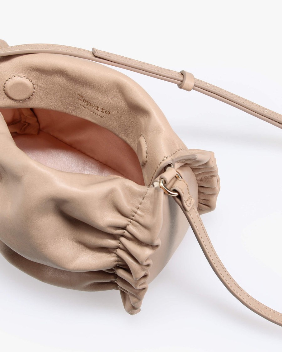 The new Petit Opéra bag, a tribute to the heritage of the Repetto House. The fluidity of the lines, the softness of the leather, and the pleated details express the grace and femininity that are emblematic of the ballet world. Its round and generous shape, in a mini format, draws inspiration from the iconic design of dance bags. Made in Italy with high-quality leather lined with satin, this new model is worn crossbody. The Petit Opéra bag is signed with a removable grosgrain bow that delicately highlights its unique style.