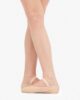 Leather soft ballet shoe with full sole, sewn elastics, to be used specifically during the first years of dance.The soft and resistant leather allows for a better support of the foot. The full sole allows a better balance when the foot lies flat, and helps to develop the young dancers’ instep strength.