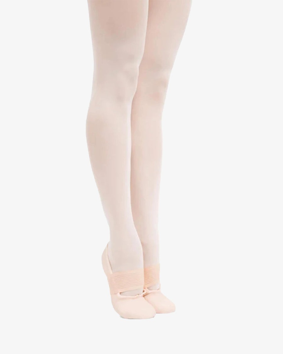 The T229E is a leather soft ballet shoe with full sole, for beginners. The full sole and the especially adapted shape help to develop the instep strength. The petal pink colour and the finishing perfectly match with the dance tight D0660-047.