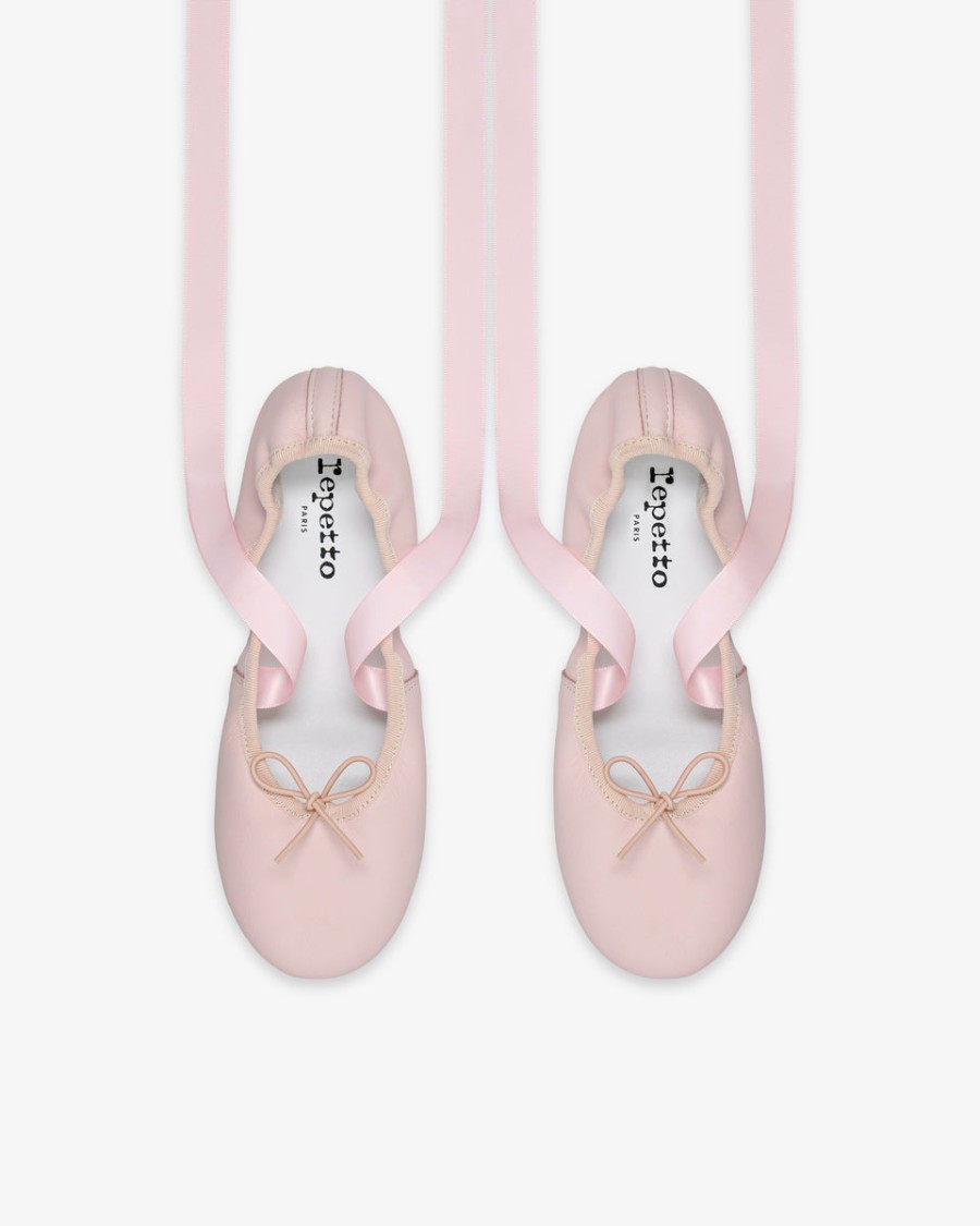 Details: Ballerinas with satin ribbon. Cowhide leather insole. Cotton lining. Leather sole.