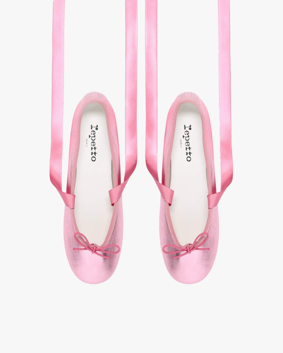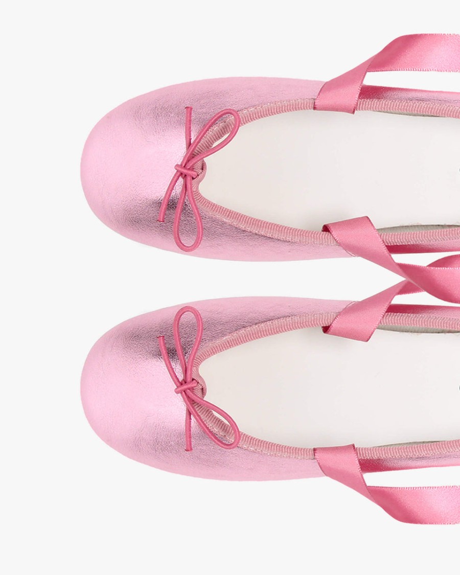 Details : Ballerinas with satin ribbon. Cowhide leather insole. Cotton lining. Leather sole.