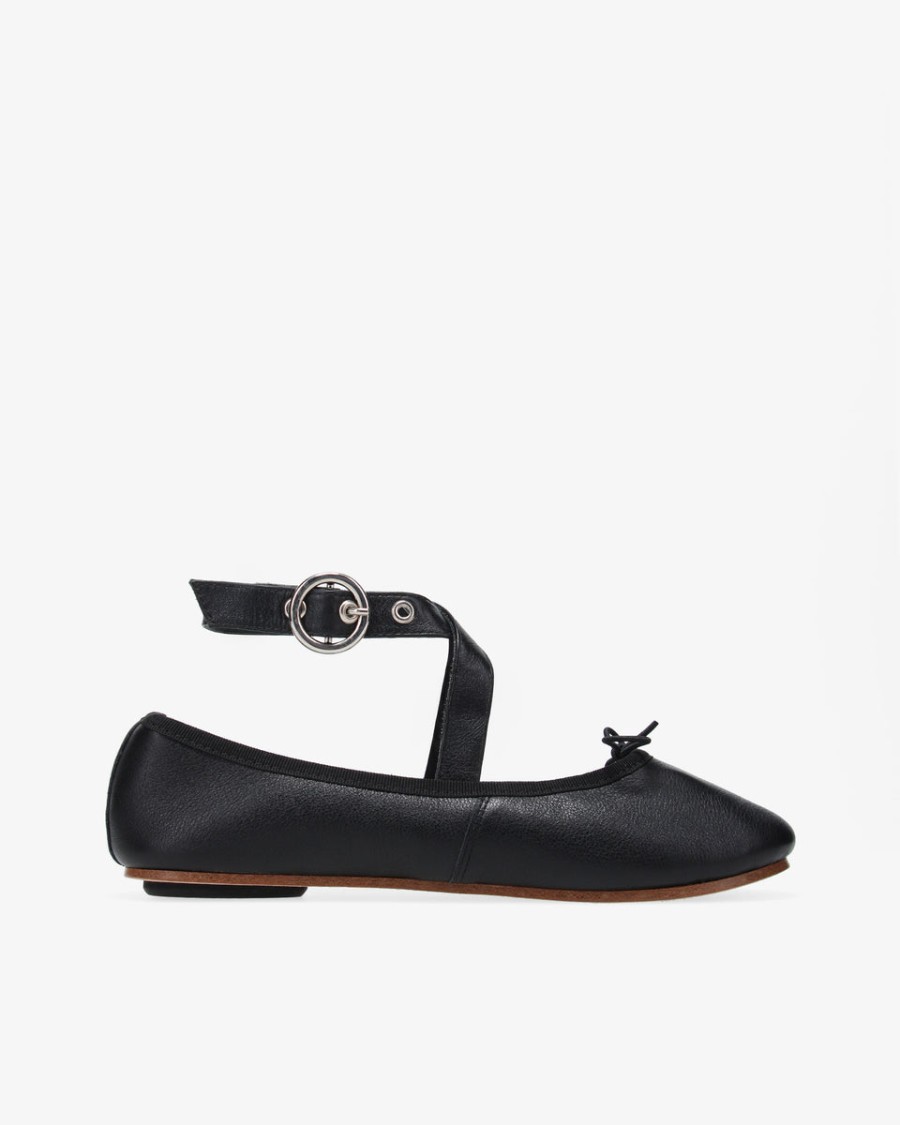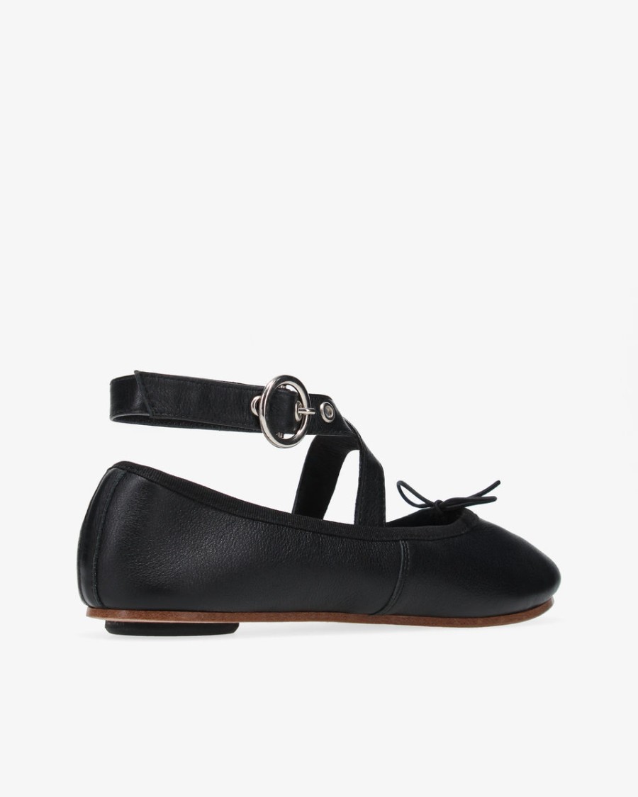 Details: Ballerinas with leather straps. Cowhide leather insole. Cotton lining. Leather sole with rubber inserts.